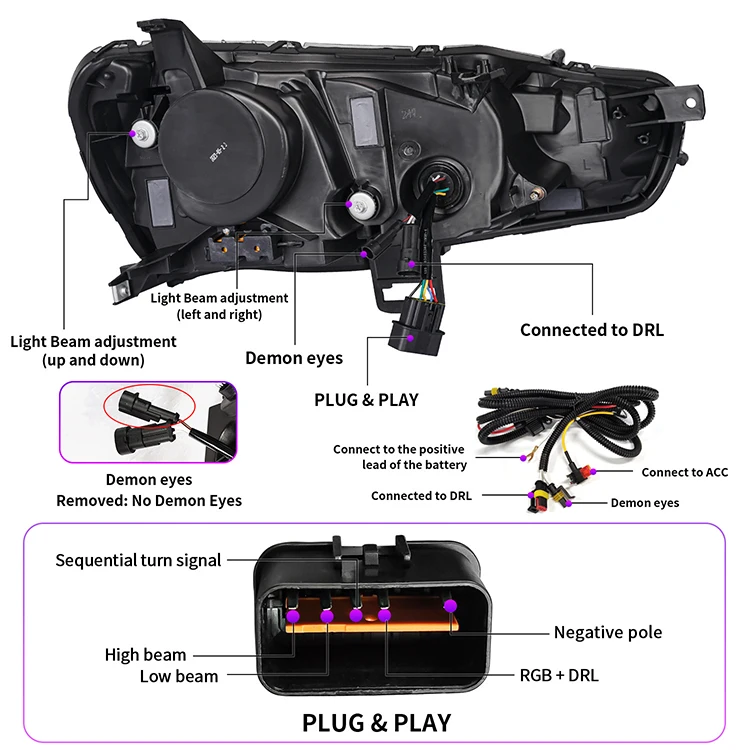 Mitsubishi Lancer Evo X 2008-2017 LED Headlights RGB HCMOTIONZ